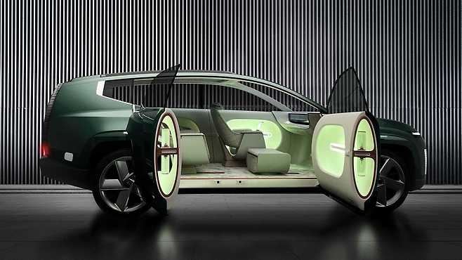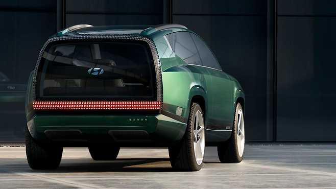 세븐 콘셉트는 후면 힌지형 코치 도어, L자형 소파의 라운지 같은 인테리어, 전면 유리 테일게이트 등 파격적인 디자인을 선보였다. 그러나 아이오닉 9은 이런 기능을 모두 버리고 전통적인 SUV를 따를 전망이다.