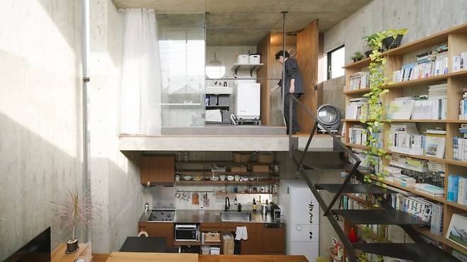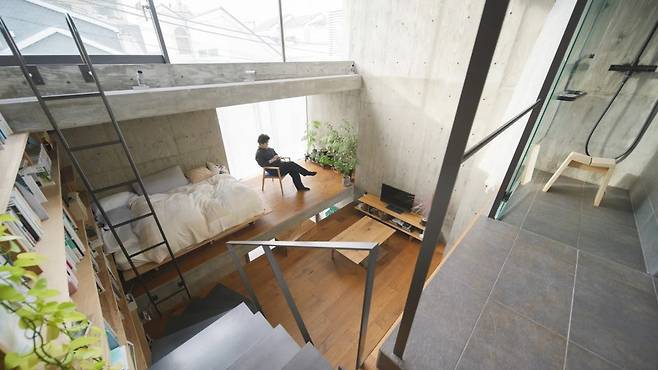 17평 협소주택을 인테리어 건축가가 설계하며, 방을 만들지 않고 단차를 쌓아 7개의 생활 존으로 나눴습니다. 노출콘크리트 외관은 도시적 분위기를 살리고, 내부는 플랫폼이 층고와 채광을 공유하게 구성해 답답함 없이 공간을 확장합니다.