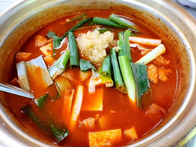 깔끔한 고추장찌개를 맛볼 수 있는 충남 '정여사 고추장찌개'. 고추장만 풀어 국물을 내는 것이 아닌 고춧가루로 국물을 내 텁텁하지 않고 깔끔한 국물이 일품이다. 돼지고기와 감자가 푸짐하게 들어가 건더기를 건져먹는 재미를 느낄 수 있고 대파가 넉넉하게 들어가 대파 특유의 달큰함이 국물에 은은하게 배어 나온다. 여기에 라면이나 칼국수 사리를 넣어 마무리하면 고추장찌개를 마지막까지 제대로 즐길 수 있다.