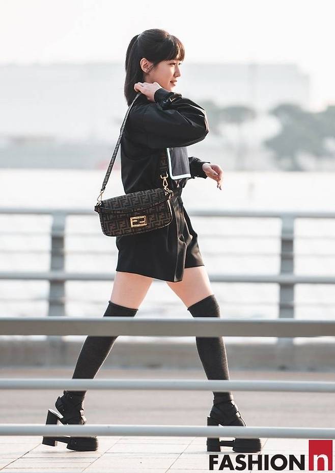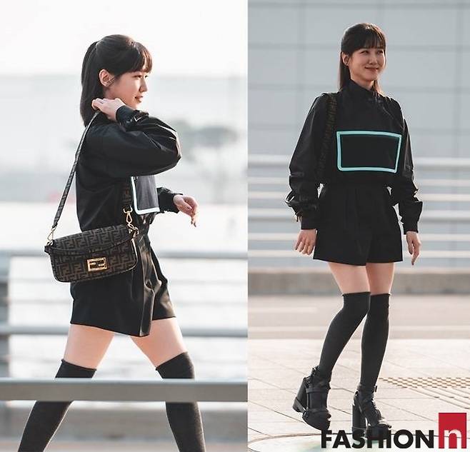 배우 박은빈이 상큼하면서도 톡톡 튀는 핫쇼츠 올 블랙 공항룩으로 눈길을 사로잡았다.