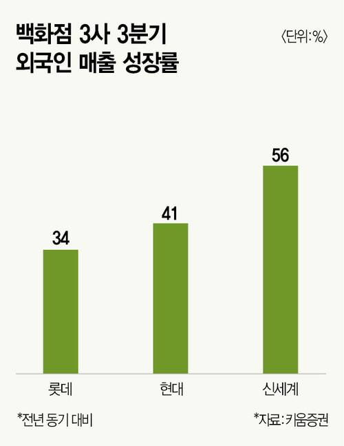 중국인 단체관광객에게 무비자 입국을 허용한 정책도 백화점에 호재로 작용했다. 한국에 방문하는 절차가 간단해지며 더 많은 중국인 관광객이 방한해 지갑을 열었다. 신세계면세점 명동점에 따르면, 중국인 단체관광객 무비자 입국 제도 시행 이후 한 달 동안 중국인 방문객은 전년 동기 대비 90% 늘었고, 매출은 40% 증가했다. 박상준 키움증권 애널리스트는 “2010년대 초반에도 방한 중국인 관광객이 증가할 때 외국인 관광객의 국내 소비지출 증가가 강하게 나타났다”고 설명했다.