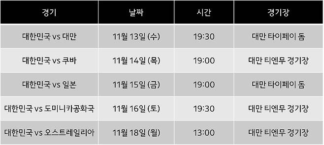 대한민국 경기일정(오프닝라운드)