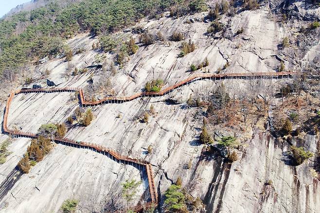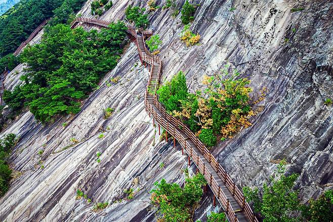 짧은 준비만으로 만날 수 있는 수직 암벽의 짜릿함, 기암괴석이 펼쳐내는 장대한 자연미, 그리고 국내에서는 좀처럼 보기 힘든 산악 잔도라는 독특한 매력을 이곳은 고스란히 품고 있다.