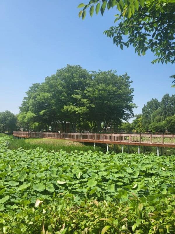 공원 내에는 연꽃 습지와 모래 놀이터가 조성되어 있어 다양한 체험이 가능합니다. 나무데크로 만들어진 소풍산책길을 따라 걸으며 평화로운 분위기를 만끽할 수 있습니다.
