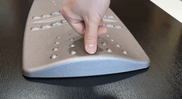 허리의 무게를 고르게 분산시켜 주는 인테그랄 폼 소재로 만들어져 척추를 탄탄하게 지지해 줍니다. 받침대 표면에는 돌기가 있어 지압 효과도 느낄 수 있죠.