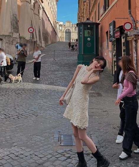 먼저 한소희는 아이보리 컬러의 민소매 원피스룩을 선보였는데요.