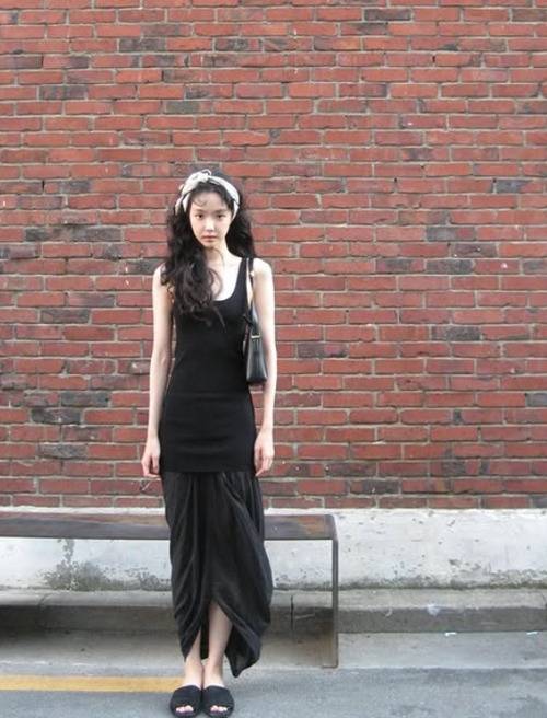 손나은은 블랙 민소매와 셔링 포인트의 스커트를 매치했는데요.