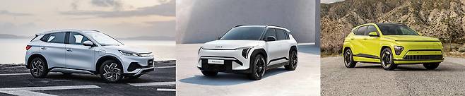 BYD의 주력 모델인 아토3는 국내에서 현대 '코나 일렉트릭', 기아 'EV3'와 경쟁할 것으로 예상된다. 아토3의 중국 내 가격은 한화로 약 3000만원대지만, 국내에선 3500만~4000만원대로 책정될 전망이다. 이는 코나 일렉트릭과 EV3의 실제 판매 가격인 3000만원 초중반대보다 높은 수준이다. 또 아토3가 LFP 배터리를 장착해 보조금 혜택도 크지 않아 가격 경쟁력 측면에서 불리할 것으로 전망된다.