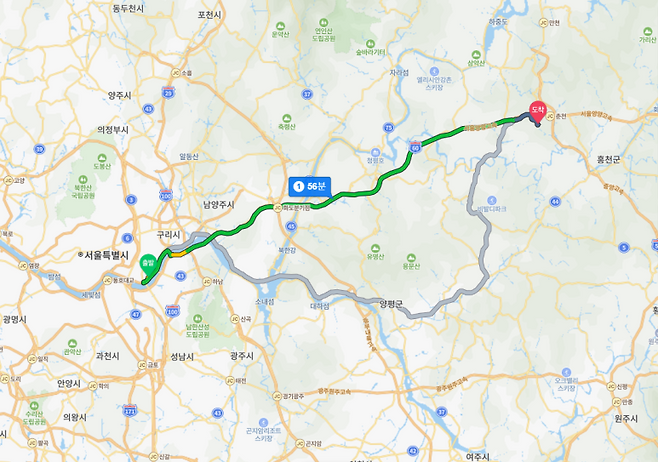 서울에서 80-90km 정도로 접근성이 매우 뛰어난 편은 아니지만, 대부분 구간을 고속도로로 이동하여 운전 피로감은 크지 않은 편입니다.
