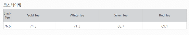화이트 티 기준으로 5847m(Out 코스 2914m, In 코스 2933m)로 되어있고, 이날 실제 세팅은 5605m(Out 코스 2945m, In 코스 2660m)로 타 골프장보다 짧은 전장으로 되어있었습니다.