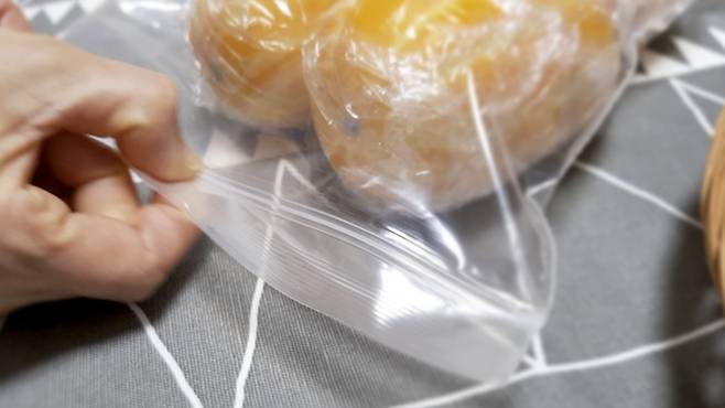 여기에 마지막으로 지퍼백에 담아 공기를 최대한 빼서 닫아 주세요. 이렇게 하면 이중으로 보관이 되어 수분이 새어나갈 틈 없이 참외를 보관할 수 있어 정말 좋아요.