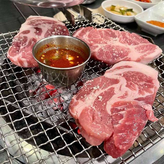 ▲메뉴: 흑돼지 오겹살 21,000원 / 흑돼지 목살 22,000원 / 항정살 21,000원