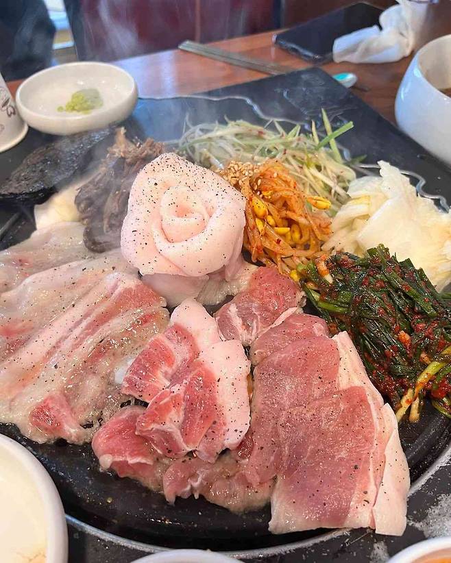 ▲메뉴: 한라산 세트 79,000원 / 성산일출봉 세트 59,000원 / 숯불제주흑돼지냉삼 20,000원