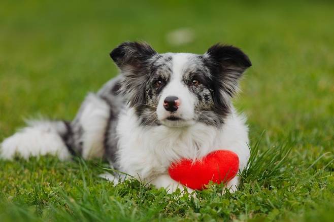 지능 순위에서 1등을 해 세상에서 가장 똑똑한 강아지로 유명한 보더콜리입니다. 보더콜리는 키(체고) 48~53cm, 몸무게는 18~23kg 정도의 중형견이에요. 보더콜리 중 멀 유형의 점박이 무늬를 가진 경우가 많답니다.