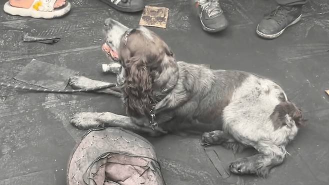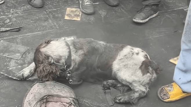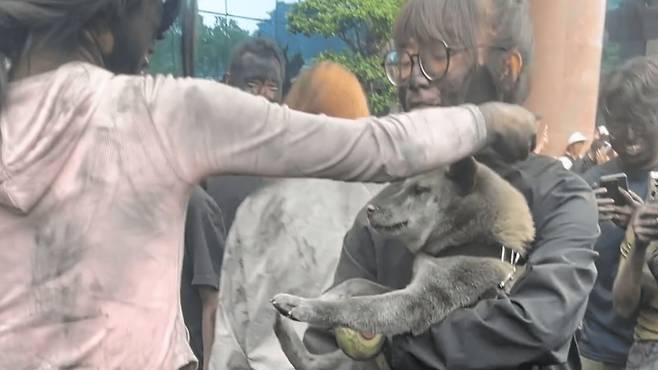 평소처럼 산책을 나왔을 뿐인 강아지도 예외가 아니었습니다. 지나가는 사람마다 강아지에게 검은색을 칠해줬습니다. 바닥에 엎드려 모든 것을 받아들이는 모습은 마치 싸움에서 진 작은 겁쟁이 같습니다.