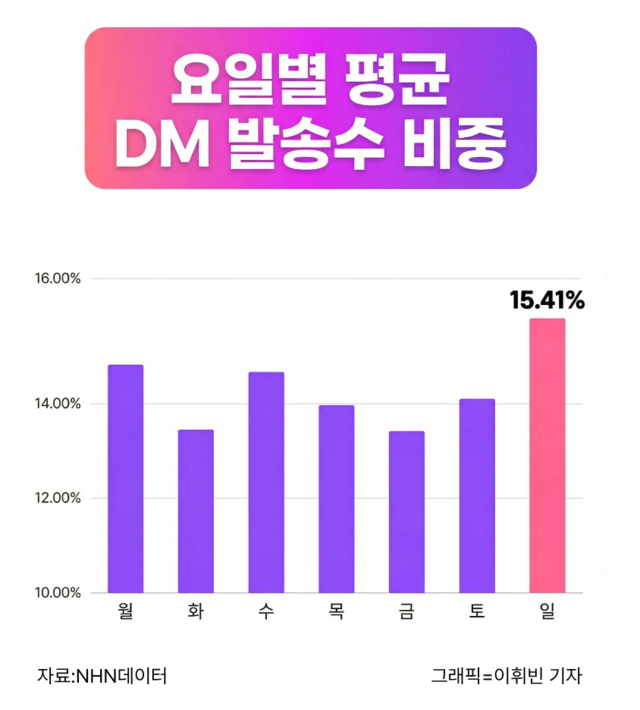 NHN데이터는 5일 ‘2025년 4분기 인스타그램 트렌드 리포트’를 통해 이와 같이 밝혔다. 자사의 소셜 마케팅 분석 솔루션 ‘소셜비즈’를 통해 DM 발송 데이터를 기반으로 이용자들의 반응이 활발한 시점을 분석했다.