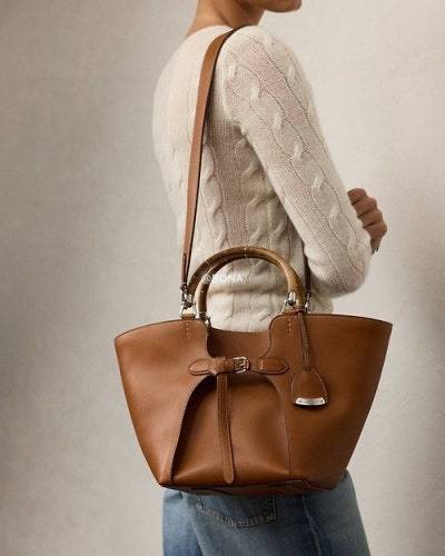 • RALPH LAUREN 랄프 카프스킨 토트 (5,550,000원): 전체 수작업으로 조각된 독특한 그레인 패턴이 포인트래. 탈부착 가능한 숄더 스트랩까지 있어서 활용도 짱일 듯! 👜