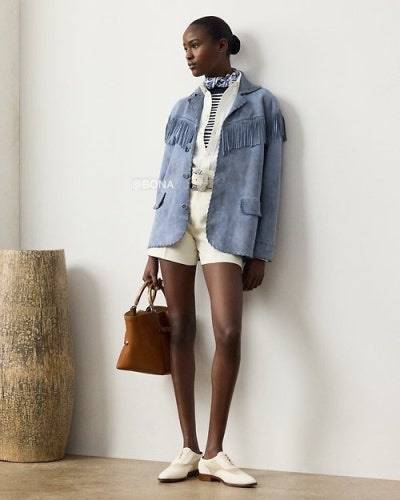 그녀의 스타일링 포인트를 좀 더 자세히 살펴볼까? 먼저, Rennie Fringe-Trim Lamb-Suede Jacket은 부드러운 양가죽 소재와 섬세한 프린지 장식이 돋보이는 아이템이야. 여기에 랄프 카프스킨 토트백을 매치하여 전체적인 룩에 고급스러움을 더했어. 액세서리는 최소화하면서 옷 자체의 디테일을 강조한 점도 눈여겨볼 만해! 🕶️