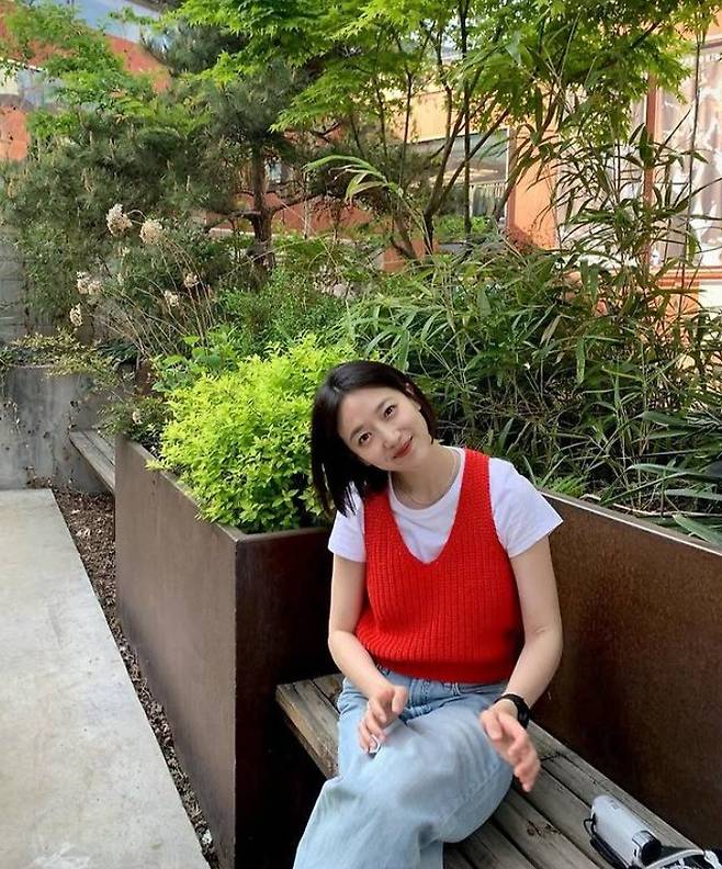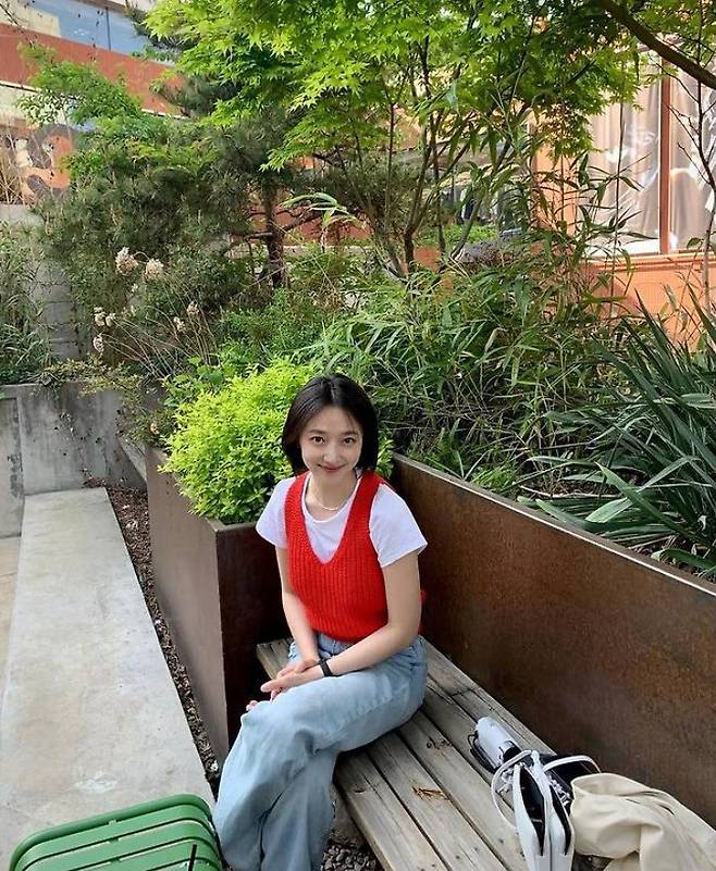 표예진은 베이직한 화이트 티셔츠에 손뜨개 느낌의 레드 니트 베스트를 레이어드해서 포인트를 줬어. ❤️ 밋밋할 수 있는 룩에 확실한 생기를 불어넣는 센스! 👍 그리고 여유 있는 라이트 데님 팬츠로 전체적인 스타일을 자연스럽게 마무리했지. 꾸안꾸 스타일의 정석이라고 할까? 😉