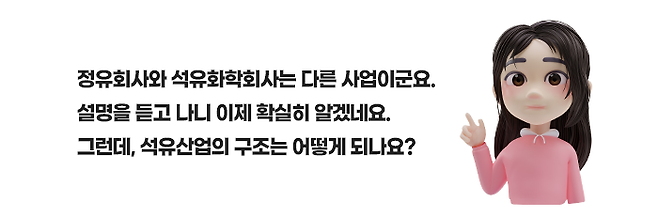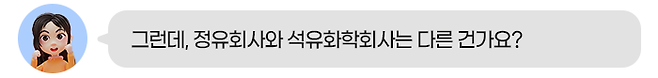 네. 다릅니다. 정유회사와 석유화학회사가 같다고 아시는 분들도 있는 것 같은데요. 정유회사는 석유 정제, 쉽게 말해 원유를 처리하여 수송 연료, 난방 연료, 석유화학제품 원료 등을 제조하는 산업입니다.