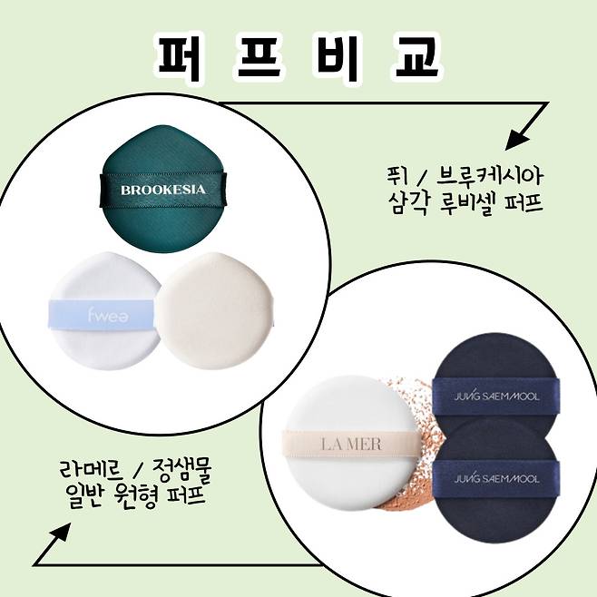 퓌와 브루케시아 쿠션 퍼프는 삼각 퍼프여서