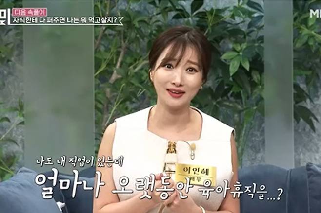 이인혜는 “남편이 ‘난 바쁘니까 당신이 맡아서 교육해. 아이에게 엄마가 필요하지’라고 이야기하더라”라며 “얼마나 오래 일을 쉬어야 하는 것일까”라는 고민을 털어놨다.