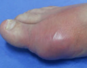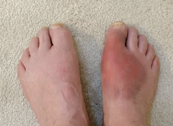 증상: 보통 엄지발가락 관절에 극심한 통증, 부기, 열감, 발적이 갑작스럽게 나타납니다. 통증이 너무 심해서 '바람만 스쳐도 아프다'고 표현될 정도입니다.