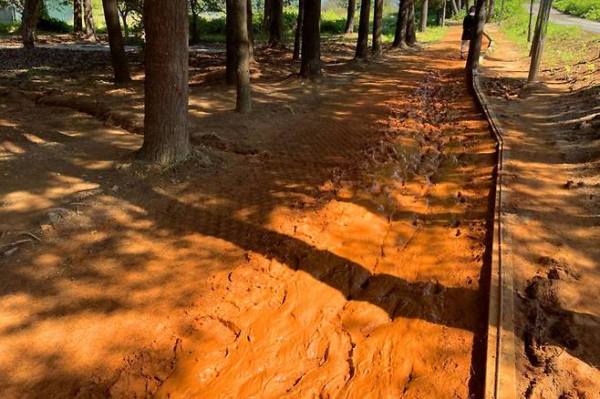 기존에 조성돼 있던 350m 길이의 황톳길은 폭 1m로 협소해 불편함이 있었는데, 이번 정비사업을 통해 폭이 2m로 넓어지고 300m 구간이 추가로 조성됩니다.
