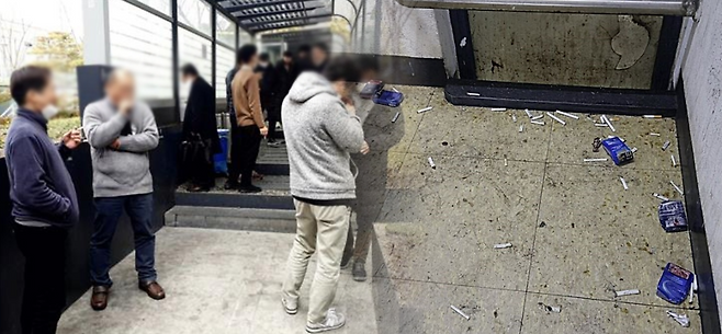 한국에서도 자주 보이는 대표적인 비매너 행동은 '바닥에 침뱉기'입니다. 특히 흡연자들은 밀폐된 흡연실이나 흡연구역에 모여 침을 뱉으면서 담배를 피우는 경우가 많은데요. 오랫동안 국내에서도 문제가 되어왔지만 크게 개선되지 않고 있습니다. 이런 습관은 외국에 나가서도 드러납니다.