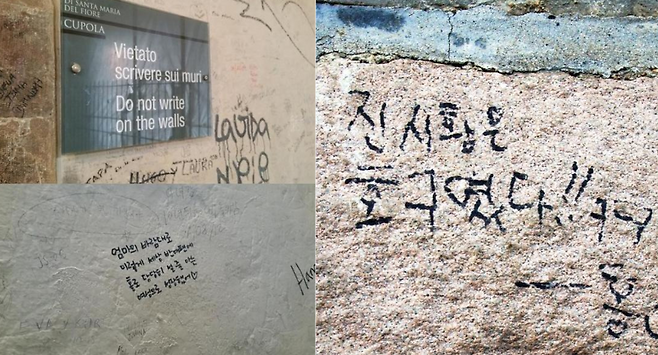 이러한 낙서를 접한 한국인 여행객들은 한 두 사람이 벌인 일로 인해 본인이 한국 사람이라는 게 부끄러워질 때도 있다고 하는데요. 우리의 문화재가 소중한만큼 외국의 문화재 또한 소중하다는 것을 명심해야겠습니다.