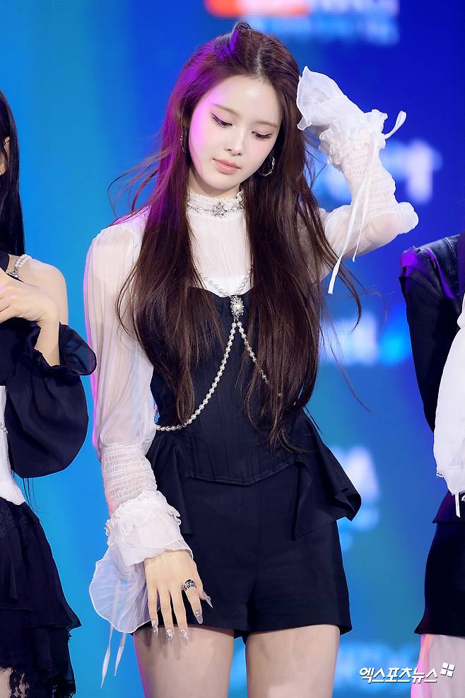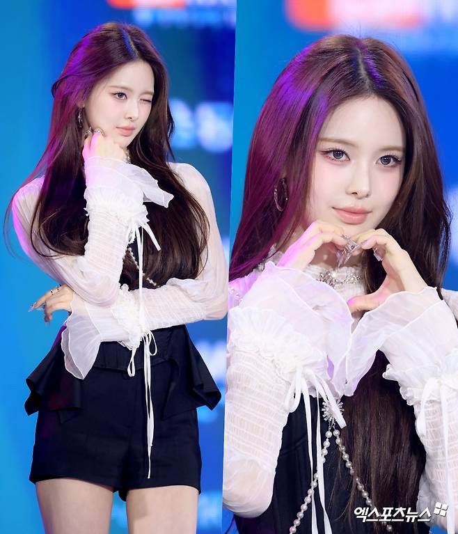 이날 방지민은 블랙 앤 화이트 대비가 돋보이는 스타일링으로 시선을 단번에 사로잡았다. 시스루 러플 블라우스와 블랙 베스트, 쇼츠의 조합은 시크함과 사랑스러움을 동시에 담아냈다. 여기에 무릎을 덮는 블랙 롱부츠를 매치해 다리 라인을 더욱 강조, 완벽한 비율을 극대화했다.