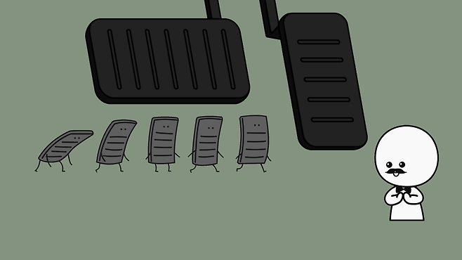 대부분 자동차에는 가속 페달과 브레이크 페달이 있습니다. 그런데 잘 생각해보면 대부분 자동차의 가속 페달은 오른쪽에 있고, 브레이크 페달은 왼쪽에 있습니다. 그리고 모양도 가속 페달은 세로로 길고, 브레이크 페달은 가로로 깁니다.