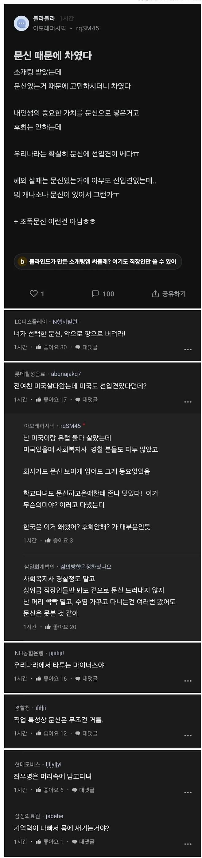 확실히 우리나라에선 문신은 아직까진 인식이 그렇긴하죠..