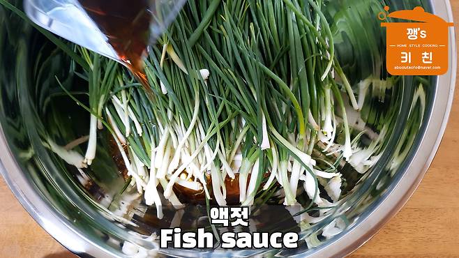7. 쪽파 절인 액젓 부어 섞기