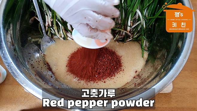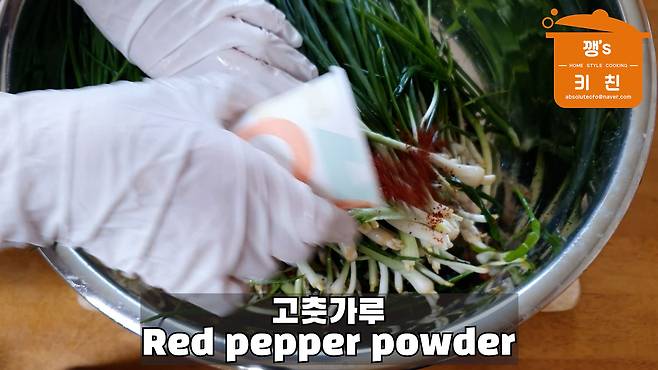 고춧가루도 흰 부분에만 뿌려 버무려줍니다
