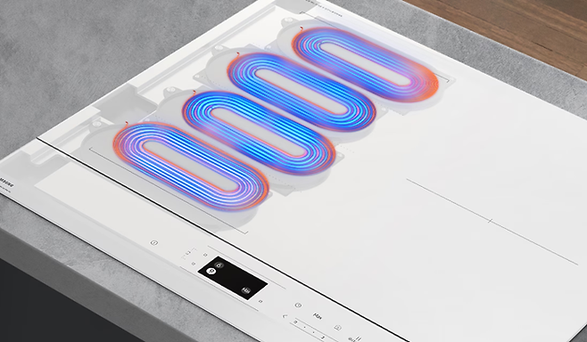 코일 밀도를 극대화한 ‘콰트로’ 혹은 ‘올 플렉스(All-Flex)’ 존의 등장은 화구의 경계를 사실상 무의미하게 만들었다. 과거에는 정해진 원형 화구에 맞춰 용기를 정확히 배치해야 했으나, 이제는 상판 어디에나 자유롭게 냄비를 올려두고 조리할 수 있다. 특히 촘촘하게 배열된 다수의 코일이 용기의 크기와 형태를 실시간으로 감지하기 때문에, 원형 냄비는 물론이고 사각형 그릴이나 가로로 긴 전골냄비까지 바닥면 전체를 사각지대 없이 균일하게 가열한다.