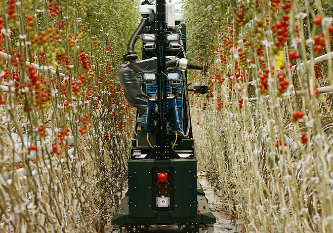 시간당 43kg에 달하는 토마토를 수확할 수 있다. 로봇에는 가중 엘리베이터 시스템이 탑재됐다.