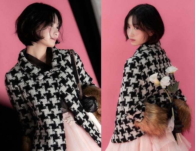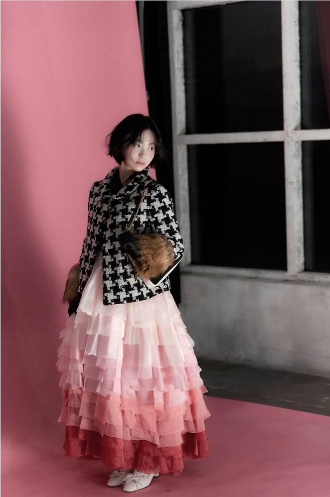 갈소원은 클래식한 트위드재킷과 로맨틱한 레이어드 드레스를 완벽히 소화하며 시선을 사로잡았습니다.