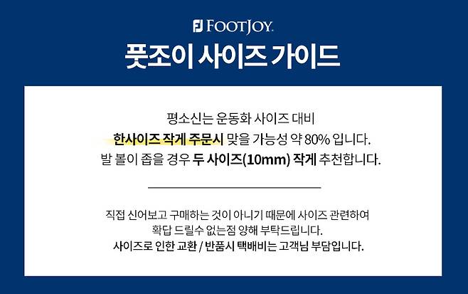 발볼이 좁은 경우 두 치수 작게 주문하시는것을 추천드립니다.