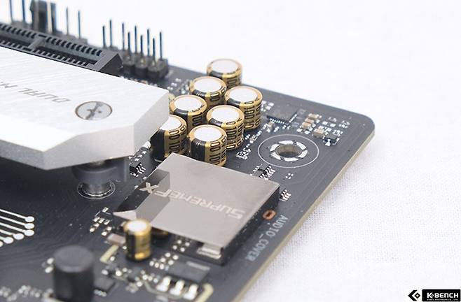 히트싱크 크기도 M.2 슬롯의 2배 정도고 두께도 일반 메인보드의 M.2 히트싱크 보다 2배는 두껍고 바닥에 백플레이트까지 준비해 일반 히트싱크 보다 쿨링 효율이 좋을 수 밖에 없다. 어차피 PCIe 4.0이 한계라 이 정도면 충분하다.