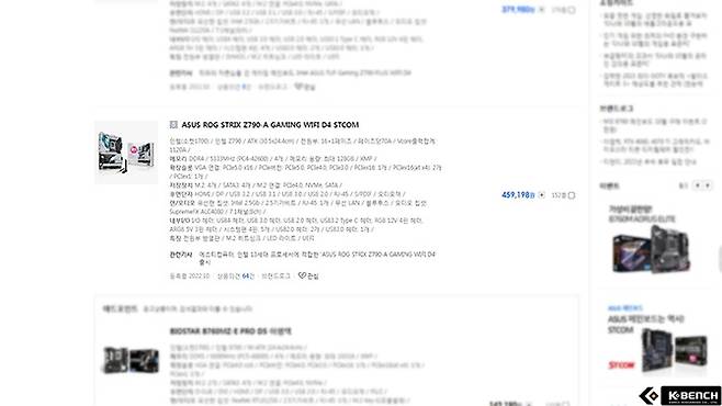 ASUS STRIX Z790-A Gaming WiFi D4는 PRIME나 TUF 보다는 조금 부담되지만 한번쯤은 선택해 볼만한 가격대인 40만원대 중반에 판매 중이다.