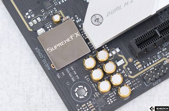 캐퍼시터도 프리미엄 오디오 캐퍼시터로 소개되어 있지만 메이커가 확인되지 않아 특성을 파악하긴 힘들었다. 과거에 ASUS는 오디오 캐퍼시터로 유명한 ELNA사의 제품을 사용해 왔는데 이 캐퍼시터에는 메이커나 모델명이 없어 같은 제품인지는 단정하기 어렵다.