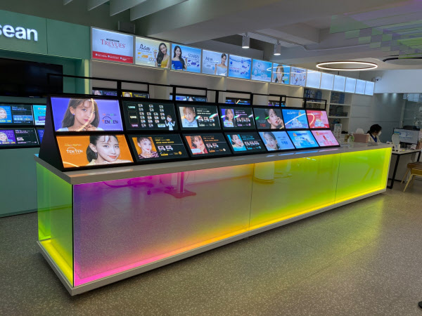다비치안경의 대표 안경테 브랜드인 ‘비비엠’ 제품들을 보관하는 비비엠장이 대표적이다. 당초 비비엠장은 목조 붙박이장이라 재활용이 불가했는데, 이를 철제 시스템가구로 디자인해 다른 매장에도 재활용할 수 있도록 했다. 고가의 안경테를 비치하는 ‘명품코너’ 가구도 기존 황금색에서 화이트톤으로 변경했다. 당초 안경 제품 판매에만 주력하던 다비치안경이 콘텍트렌즈 부문에도 진출한 점을 고려해 ‘컨택트바’ 가구도 설계했다. 점원과 고객이 소통하면서 상품 제안할 수 있는 바 형태의 가구인데, 보는 방향에 따라 색깔이 변하는 다이크로익 필름을 부착해 디자인 독창성을 살렸다.