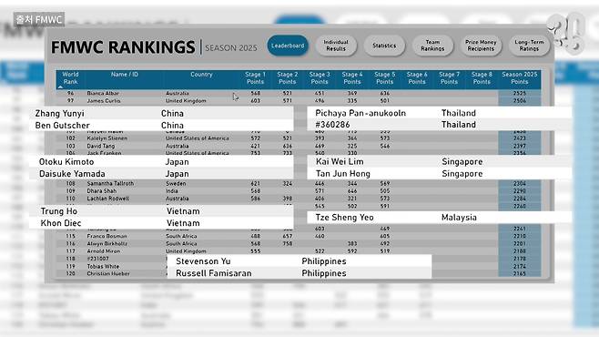 일단 취재를 하다가 좀 놀랐는데, 해당 대회에서 E 스포츠 최강국 한국의 존재감은 거의 없다. 대회 주관단체가 발표하는 세계랭킹을 보면 중국, 일본, 베트남, 태국, 싱가포르, 말레이시아, 필리핀까지 온갖 동아시아 국적 선수가 있지만 한국인은 한명도 없다.