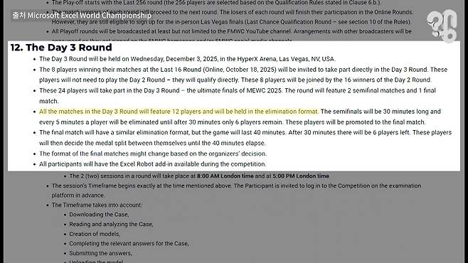 대회룰을 다 설명하긴 너무 복잡하고 어쨌든 최후의 엑셀 신동 12인이 라스베가스 대회 3일째에 최종 결승전을 치러 우승자를 가린다.