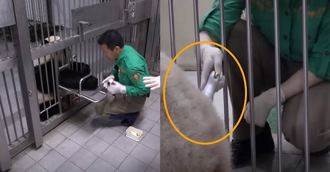 특히 러바오는 탈모 문제를 겪다가 사육사와 수의사들의 극진한 돌봄과 치료로 뽀송뽀송한 흰털이 다시 자라고 있다고 합니다. 영상에서도 러바오만을 위해 약을 먹여주는 강철원 사육사의 모습이 나왔고, 털 치료를 위해 직접 수의사가 레이저 치료를 해주는 모습까지 나와 한국에서 판다들을 얼마나 잘 돌보고 있는지 너무도 명료하게 보여줬는데요.