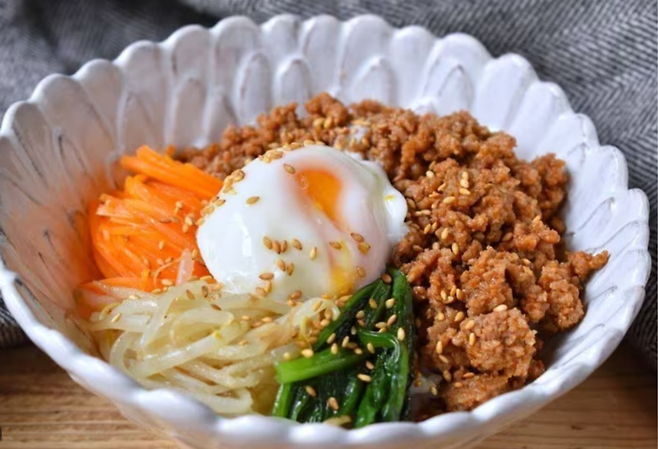 계란은 반숙으로 올리는 것이 좋다. 노른자가 자연스러운 소스 역할을 해 간장의 짠맛을 중화한다. 고기 대신 닭가슴살이나 소고기 장조림을 소량 곁들이면 단백질 균형도 맞출 수 있다.