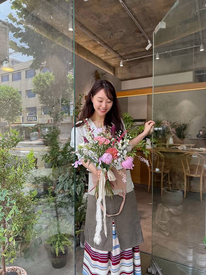 5일 송지은은 자신의 SNS에 “오늘은 세상에서 제일 행복한 꽃집 아가씨”라는 글과 함께 근황 사진을 공개했다.