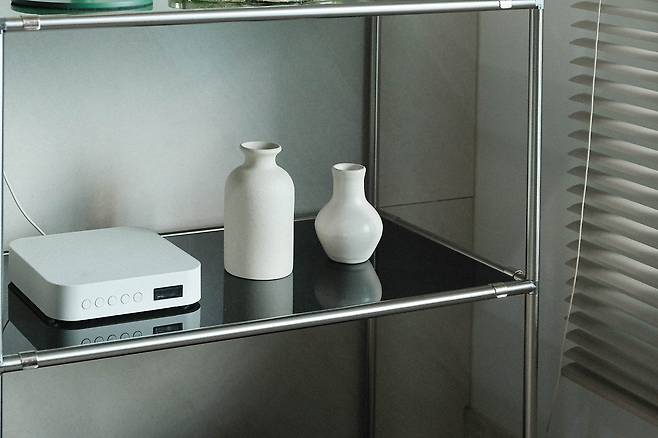 현재 그린하우스는 온전한 저희 집이 아니기에 사실 시공을 할 수 있는 부분은 거의 없었어요. 그래도 유일하게 시공할 수 있었던 것이 바로 블라인드 설치였습니다. 모던한 스튜디오 분위기를 살리기 위해 알루미늄 소재의 얇은 블라인드를 선택했고, 컬러는 TV 쪽 아트월과 톤을 맞추기 위해 베이지로 골랐어요.