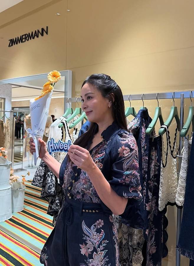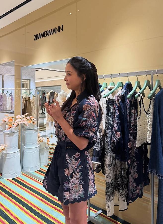공개한 사진에서 고소영은 늘씬한 각선미가 드러난 통굽 하이힐 스트랩 샌들에 꽃무늬 자수가 디자인된 반바지와 블라우스 셔츠 셋업의 투피스룩으로 50대 나이가 믿기지 않는 동안 미모를 드러냈다.